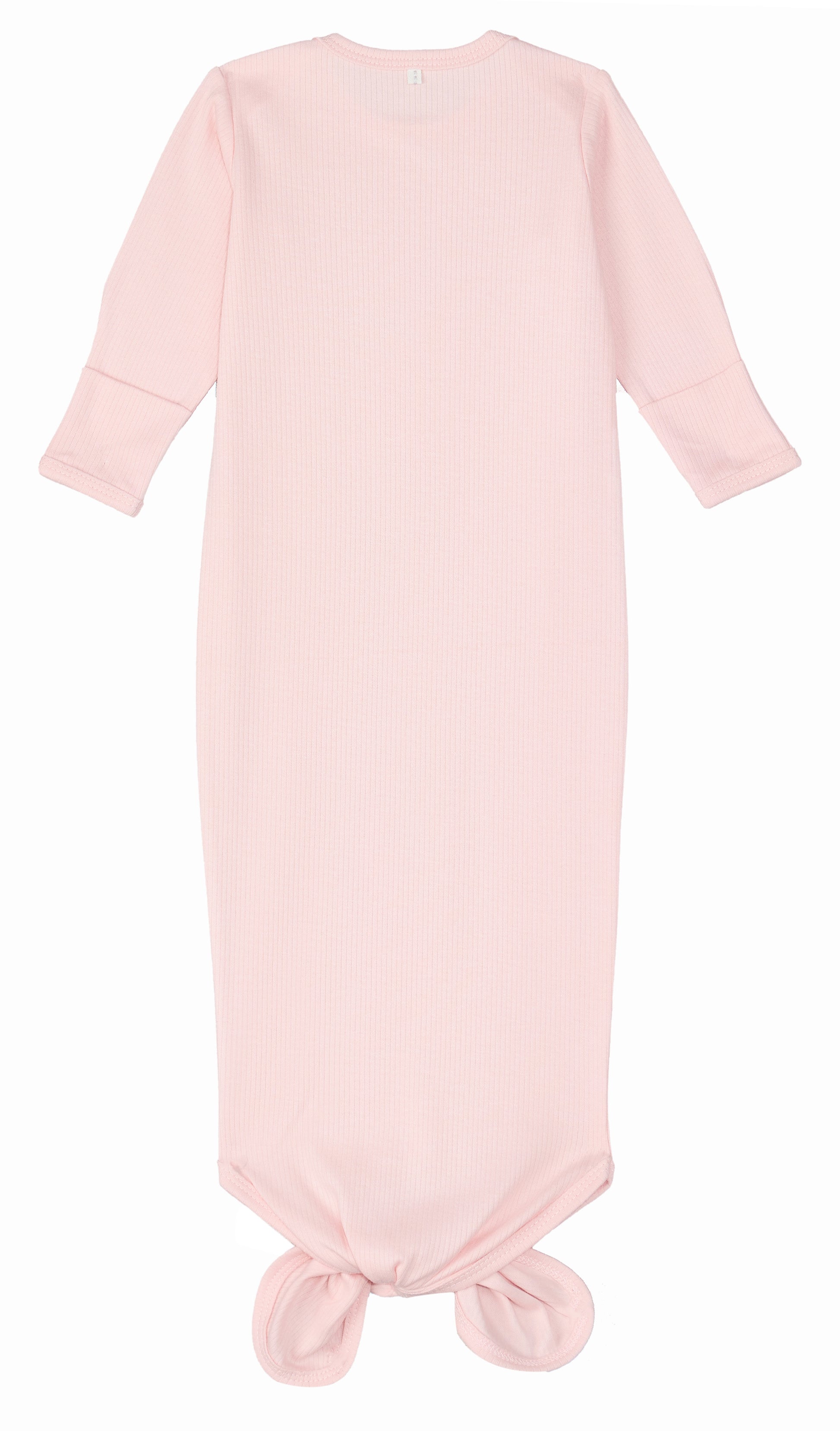 Our classic Knotted Gown is now available in a two piece set with the matching Baby Beanie from our pink collection. This knotted gown allows for easy diaper changes at night with an open tie at the bottom.